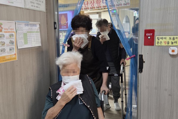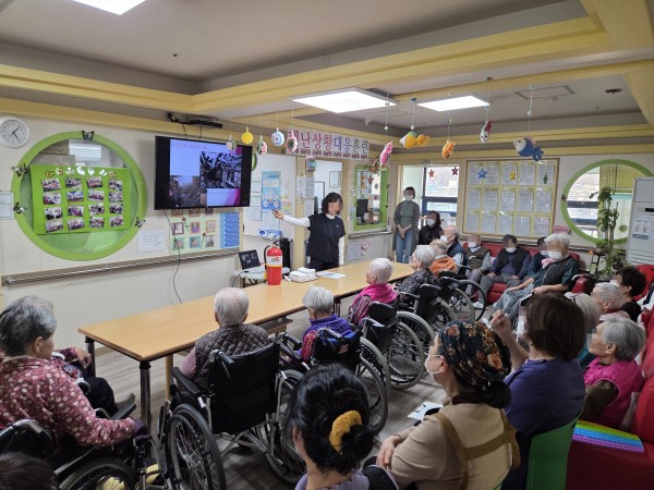 2025년 11월 17일 13시 30분에 종사자와 어르신들 대상으로 재난상황대응훈련을 실시하였습니다.